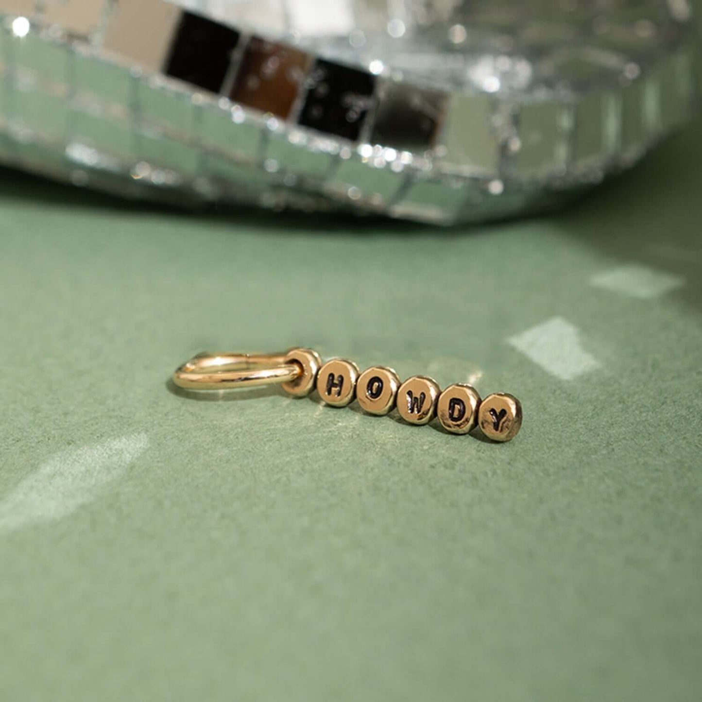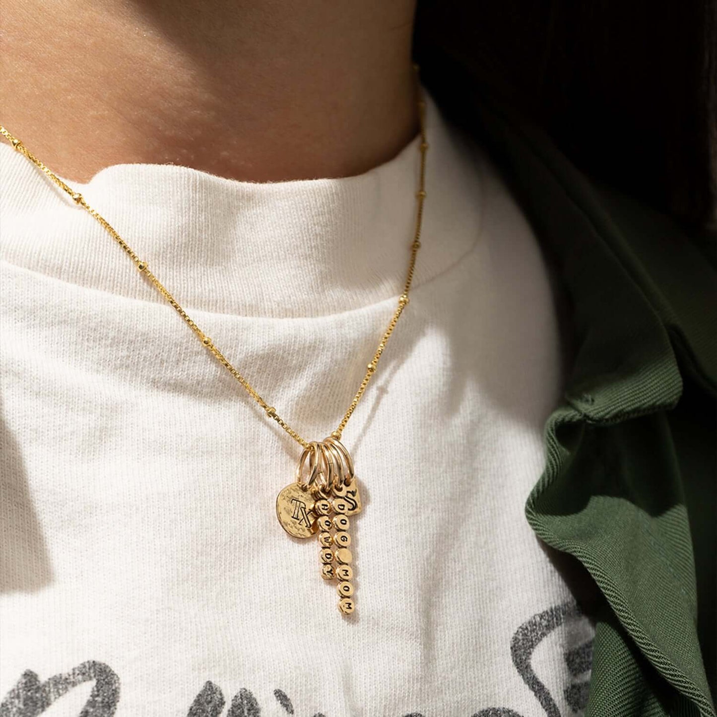 Build your own charm necklace with the Bubble Tag Pendant – a vertical hammered gold filled tag with a hand-stamped message that’s all yours. Choose from playful sayings like “Best Mama,” “Dog Mom,” “Cat Mom,” “Howdy,” “Lucky,” or personalize it with a name, initials, or a short word that speaks to you.