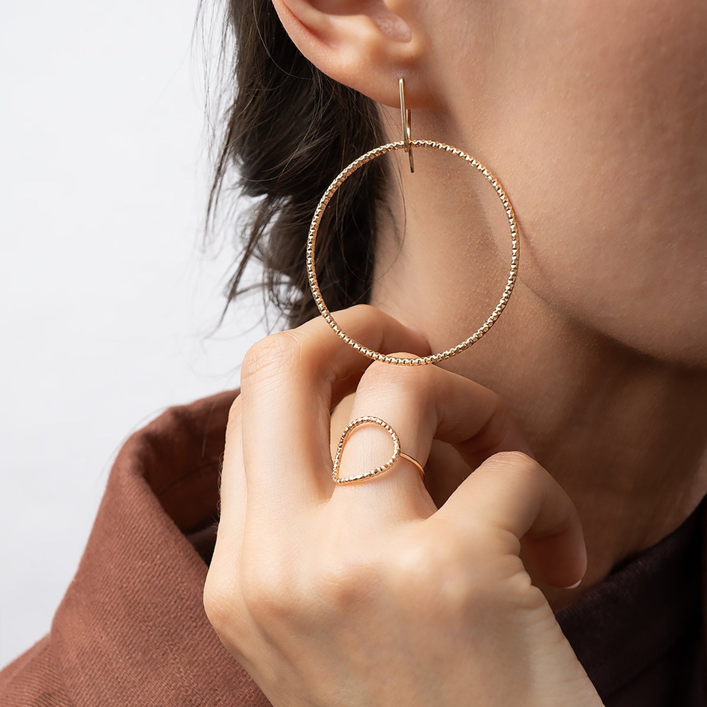 - Material: Gold-filled, textured finish