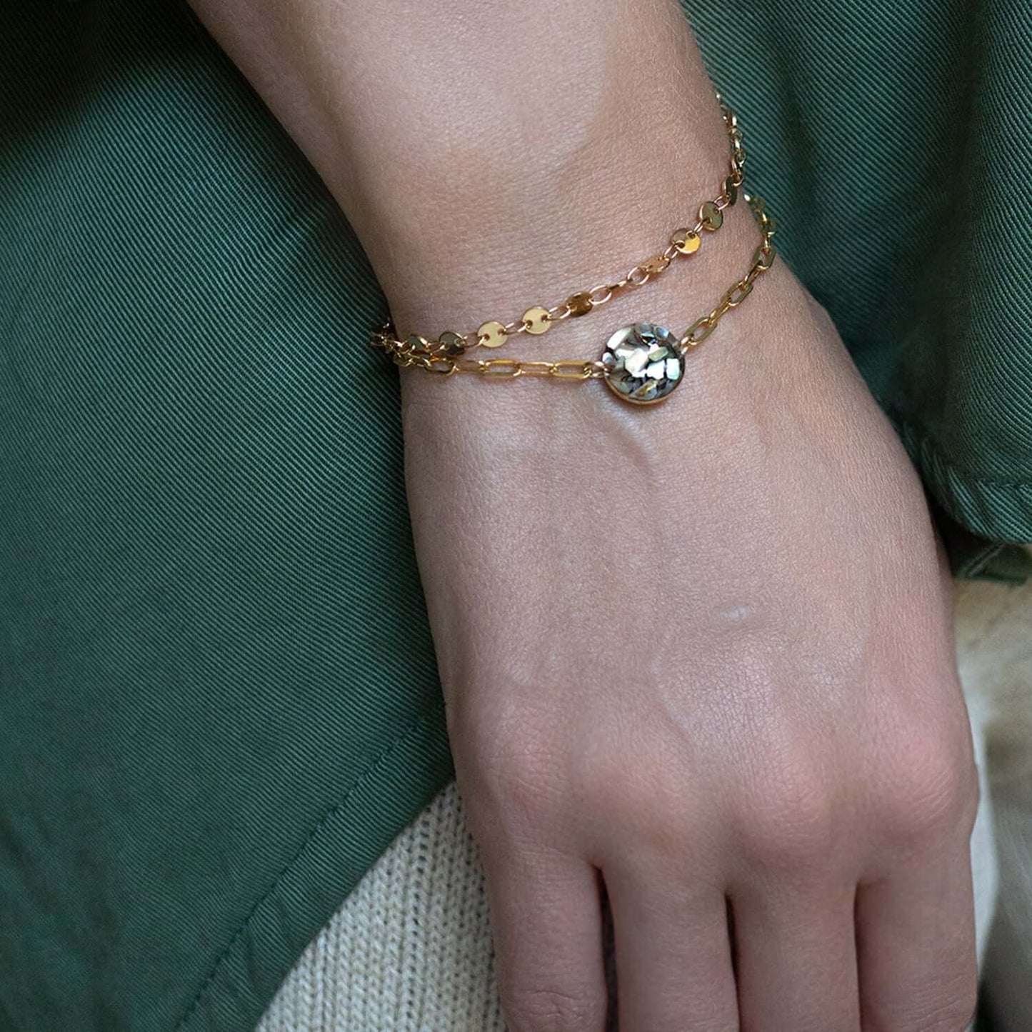 Beautiful Abalone Bracelet are iridescent eye catcher. Every crystal is hand crafted and as one of a kind as every person. Crystal features glass-like resin with crushed Abalone shell chips inside.
