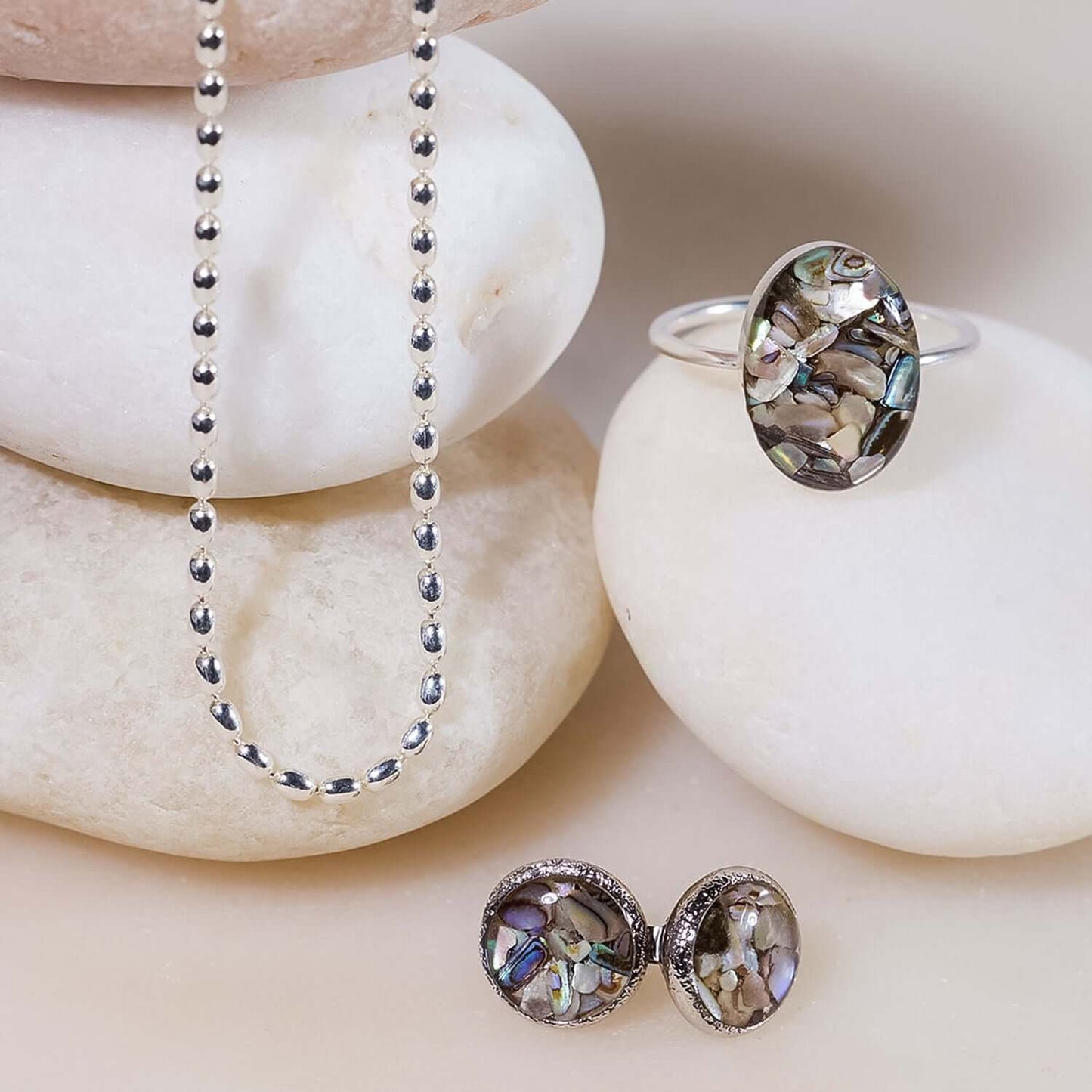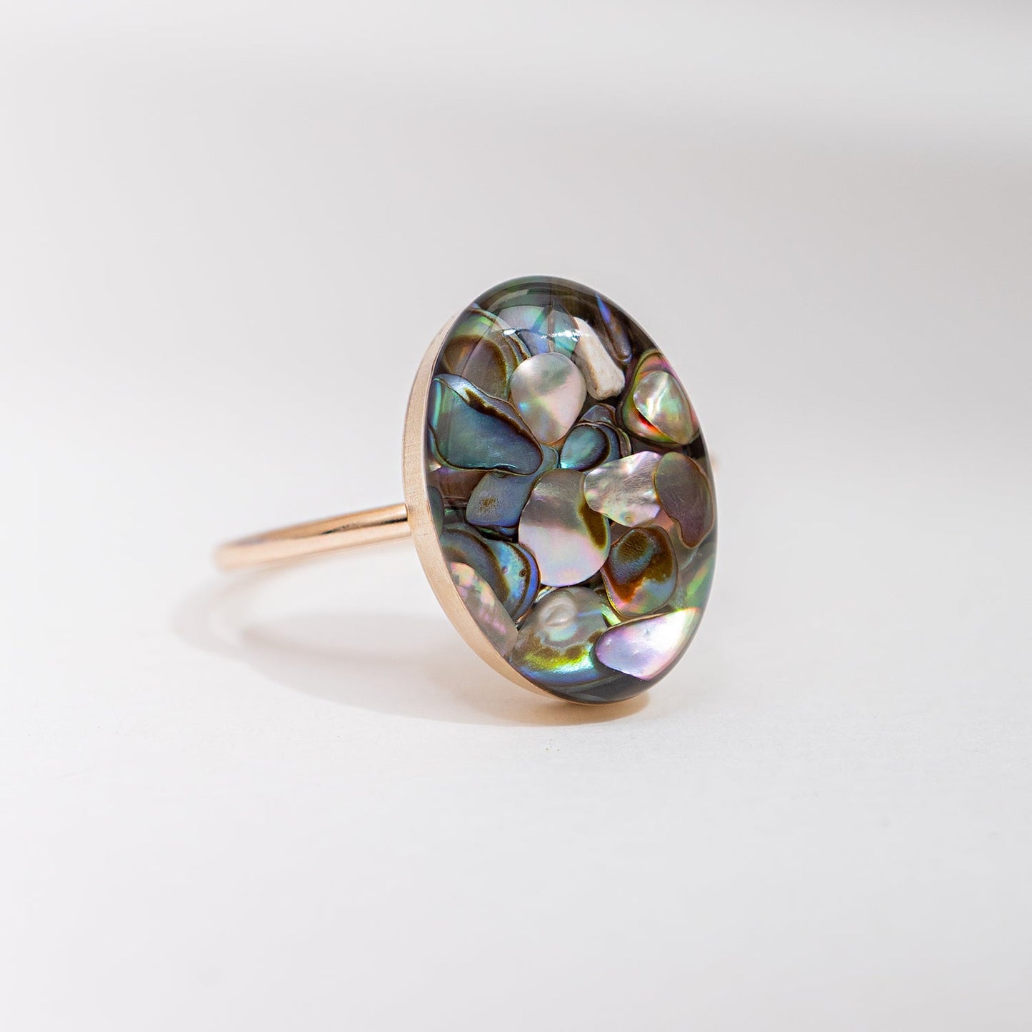 Part of the Abalone Shell collection, this ring celebrates the beauty of genuine natural materials. No two pieces of abalone shell are alike, which means your ring is genuinely one-of-a-kind — a fact that feels special every time you glance down at your hand.