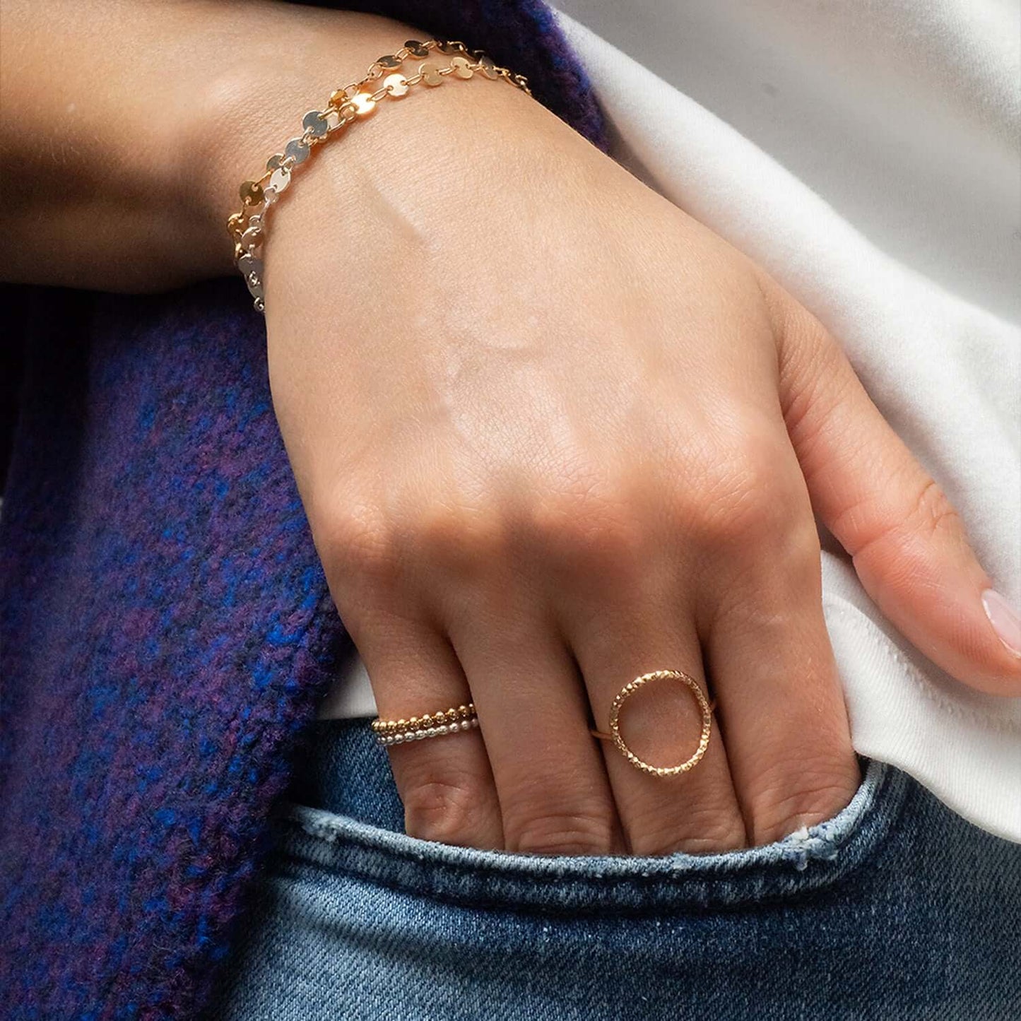 A modern gold-filled open circle ring with a textured, sparkly finish—the perfect mix of minimalist and statement jewelry. Lightweight and versatile, it’s a must-have vacation ring, a Coachella-ready accessory, and a chic spring break travel essential. Its dainty open-circle design makes it ideal for stacking rings or wearing solo for an effortless glow. Tarnish-resistant and durable, it’s a perfect Mother’s Day gift, Easter jewelry, or summer-ready piece. Whether dressing up for a music festival, beach getaway, or brunch with friends, this ring shines in every season.